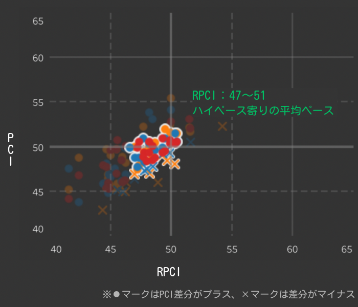 - RPCI「47〜51」のハイペース寄りの平均ペース