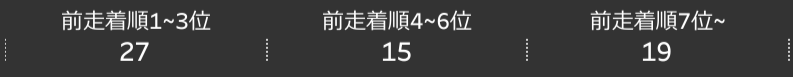 - 前走1〜3着組の好走数が「27」と最多であり、近走で結果を出していた馬がそのまま走りやすい傾向