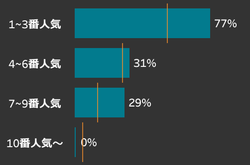 - 1〜3番人気で複勝率77%