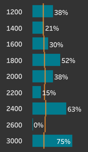 1〜3番人気での複勝率は77%で「鉄板」と呼べるレベルです。上位人気に推された坂井騎手の阪神芝1800mは、馬券の軸として最上位の評価ができます。