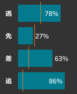 • 逃げ・追込み脚質時は複勝率78〜86%